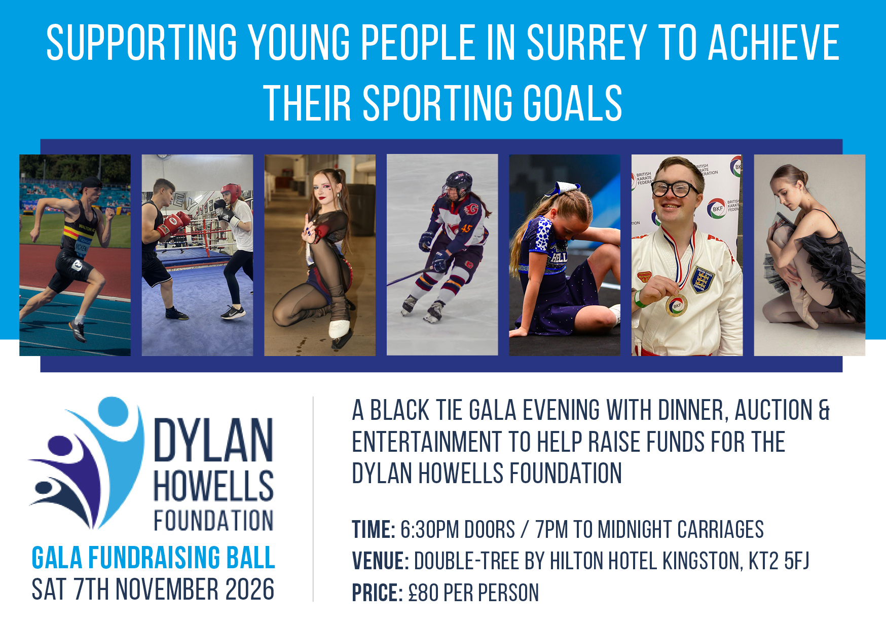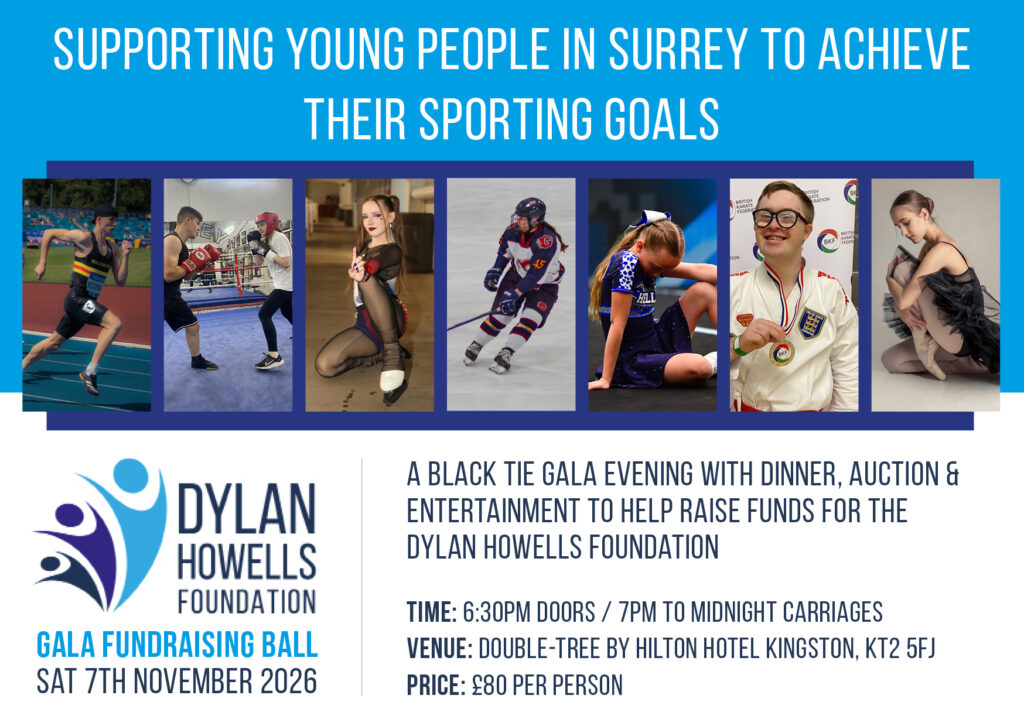 On Sat 7th November 2026, the Dylan Howells Foundation invite you to the 2026 DHF Gala – a black tie gala evening with dinner, auction & entertainment to help raise funds to support young people to achieve their sporting goals.